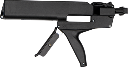 - Handpress-Pistole zur Verarbeitung von Doppelkartuschen 2 x 190 ml oder 2 x 310 ml im Mischungsverhältnis 1 : 1