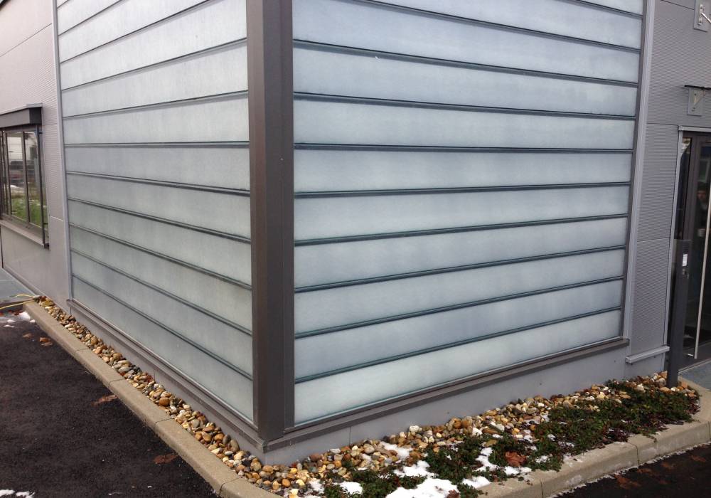 Auch gestalterische Wünsche können mit Profilglas berücksichtigt werden: Das Profilglas selbst kann klar oder mit strukturierter Oberfläche hergestellt werden. Die dämmenden Glasgewebe sind – ebenso wie Aluminiumprofile – in unterschiedlichen Farbtönen lieferbar.