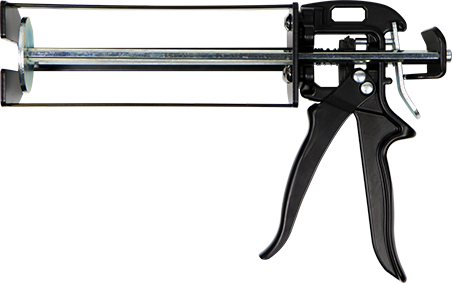 - Handpress-Pistole zur Verarbeitung von Doppelkartuschen 2 x 190 ml oder 2 x 310 ml im Mischungsverhältnis 1 : 1